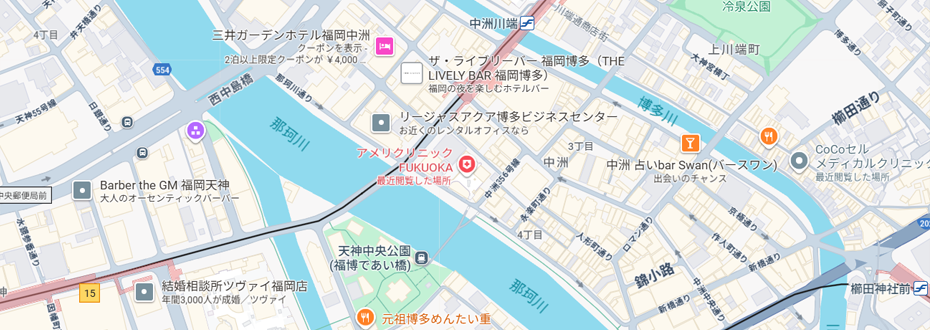 当院は、地下鉄空港線「中洲川端」駅、1番出口から徒歩1分。お車でお越しの方は、博多エクセルホテル東急の立体地下駐車場よりエレベーターでお越し頂く事ができ、外に出て日差しを浴びることなく、また他の方とほとんどお顔を合わせることもなく、スムーズにご来院いただけます。