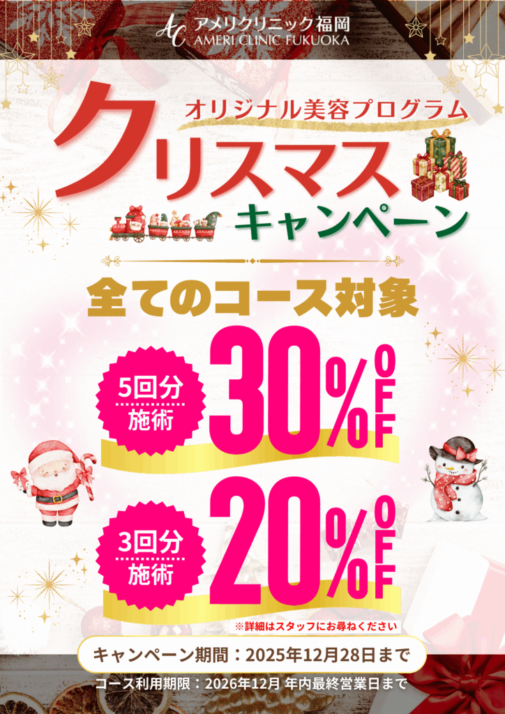 アメリクリニック福岡がご提供させて頂いております美容プログラムを、キャンペーン期間中に最大30%OFFにてご提供させて頂きます🎁