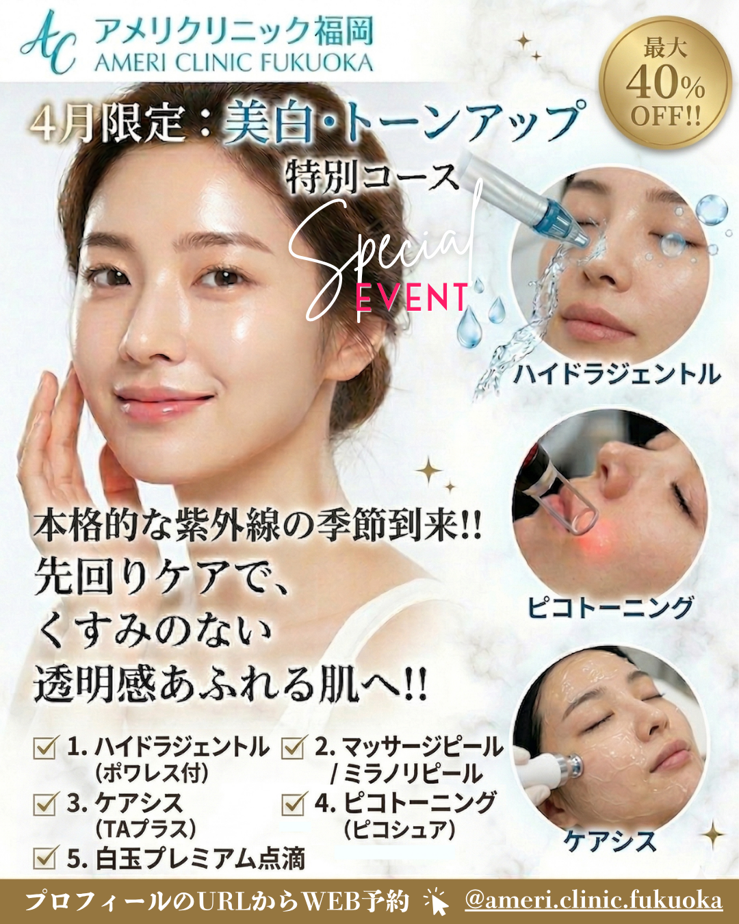 今月は、紫外線本番対策として、最強の白肌対策をしていきましょう!!