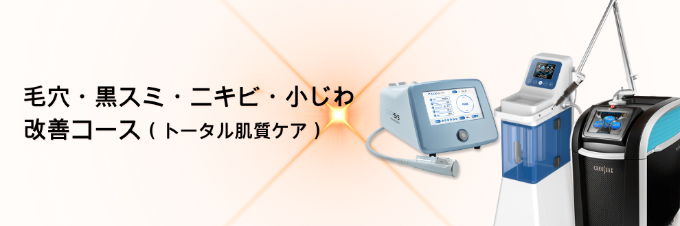 | 毛穴の開き、黒ずみ、ニキビ跡など、肌トラブルを“洗浄・再生・修復”の3ステップで改善する、アメリクリニック福岡の人気レーザー美肌コースです。詰まりを取って、肌を再生し、しっとり整える・・・1回で肌の質感が変わる、医療レベルの毛穴治療コースです。 | |||||||||