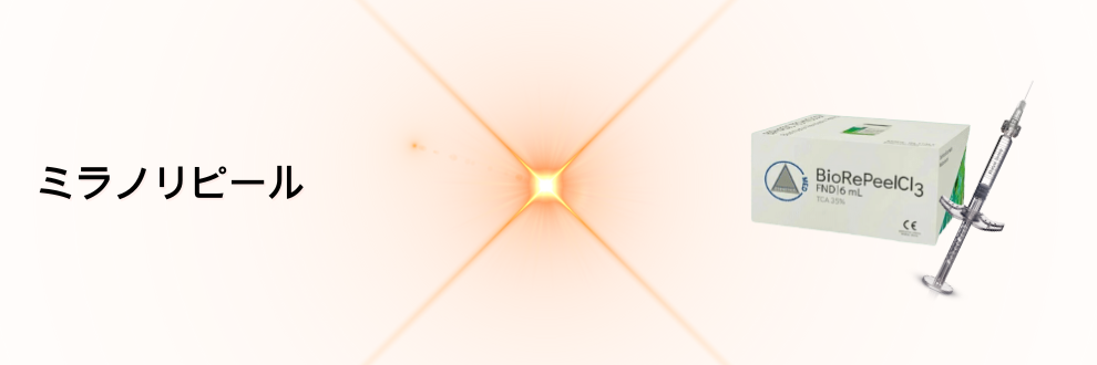 | 2.ミラノリピール TCA(トリクロロ酢酸)にアミノ酸・ビタミン・保湿成分を組み合わせた、次世代ピーリングです。角質を整えながら、真皮層でコラーゲン生成を促進し、ハリ・ツヤ・くすみ改善・ニキビ跡ケアを同時に叶えます。 | |||||||||
