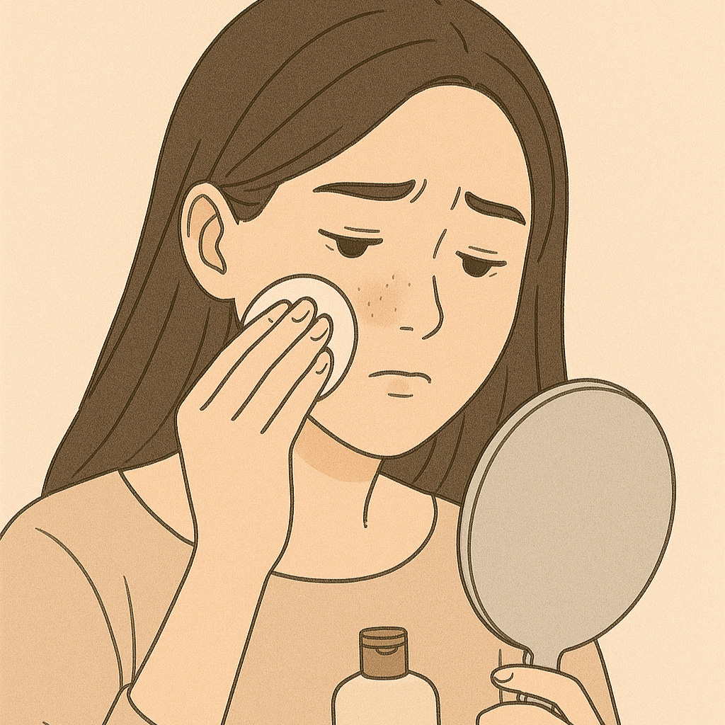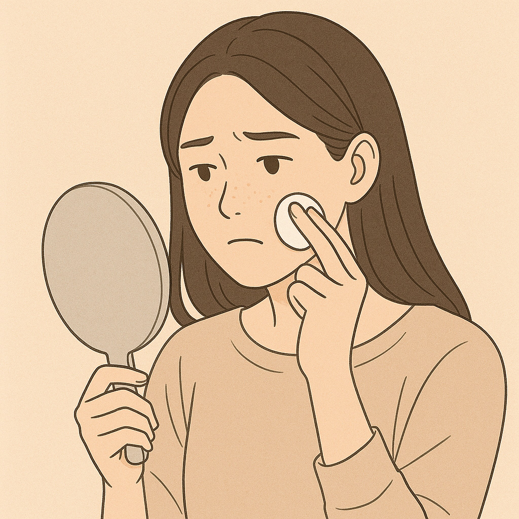 クレンジング不足や不適切なスキンケアにより、ファンデーションや日焼け止めが毛穴の奥に残ると、酸化・色素沈着を起こし、くすみや黒ずみを悪化させます。