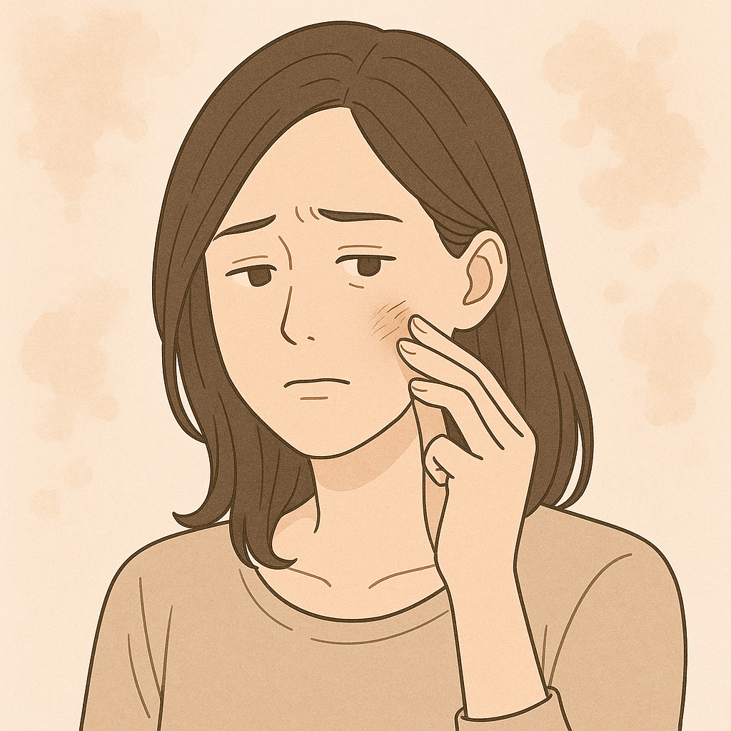 紫外線・乾燥・加齢などの影響で、コラーゲンやエラスチンが減少し、皮膚がハリを失って薄くなります。肌を支える力が弱くなることで、頬や口元が下がりやすくなります。
