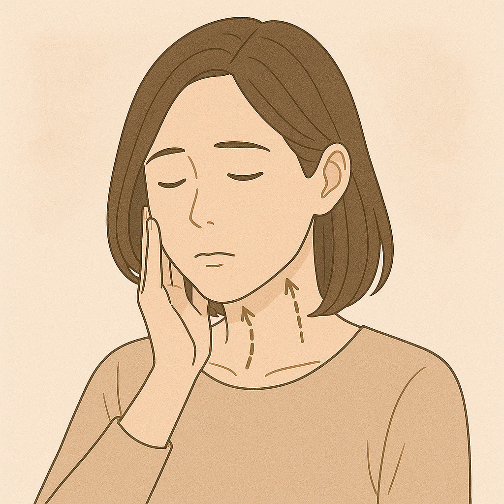 顔には、皮膚や脂肪を骨に固定する「靭帯」があり、加齢とともにこれが伸びてゆるむことで、構造的に「支えがなくなる」状態になります。この変化が「輪郭のぼやけ」や「フェイスラインの崩れ」を引き起こします。